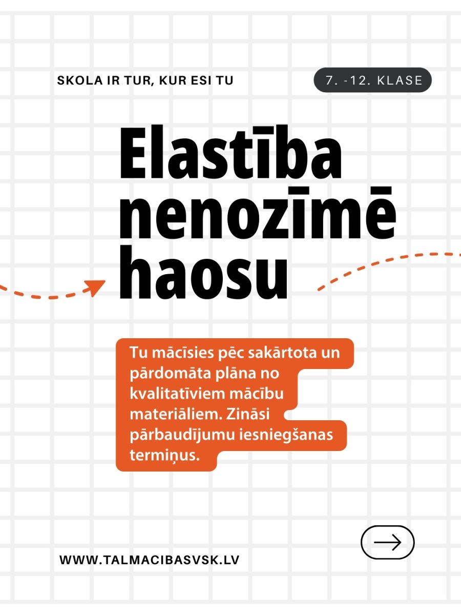 Tālmācība bieži tiek uztverta ar aizspriedumiem - ka tā ir vieglāka, mazāk kvalitatīva vai piemērota tikai tiem, kuri “negrib mācīties”. Patiesībā realitāte ir citāda. Tālmācība prasa pašdisciplīnu, atbildību un spēju plānot savu laiku. Mūsu digitālā mācību vide, pedagogu atbalsts, mācību materiāli, konsultācijas un regulāri pārbaudes darbi nodrošina pilnvērtīgu mācību procesu, kas ļauj skolēniem apgūt valsts izglītības programmu tikpat kvalitatīvi kā klātienē. Daudziem jauniešiem tā kļūst par iespēju sabalansēt mācības ar sportu, darbu, profesionālo attīstību vai veselības vajadzībām. Tāpēc tālmācība nav “vieglāks ceļš” - tā ir citāda, elastīga un mūsdienīga izglītības forma, kas dod iespēju mācīties elastīgāk. 📚💻