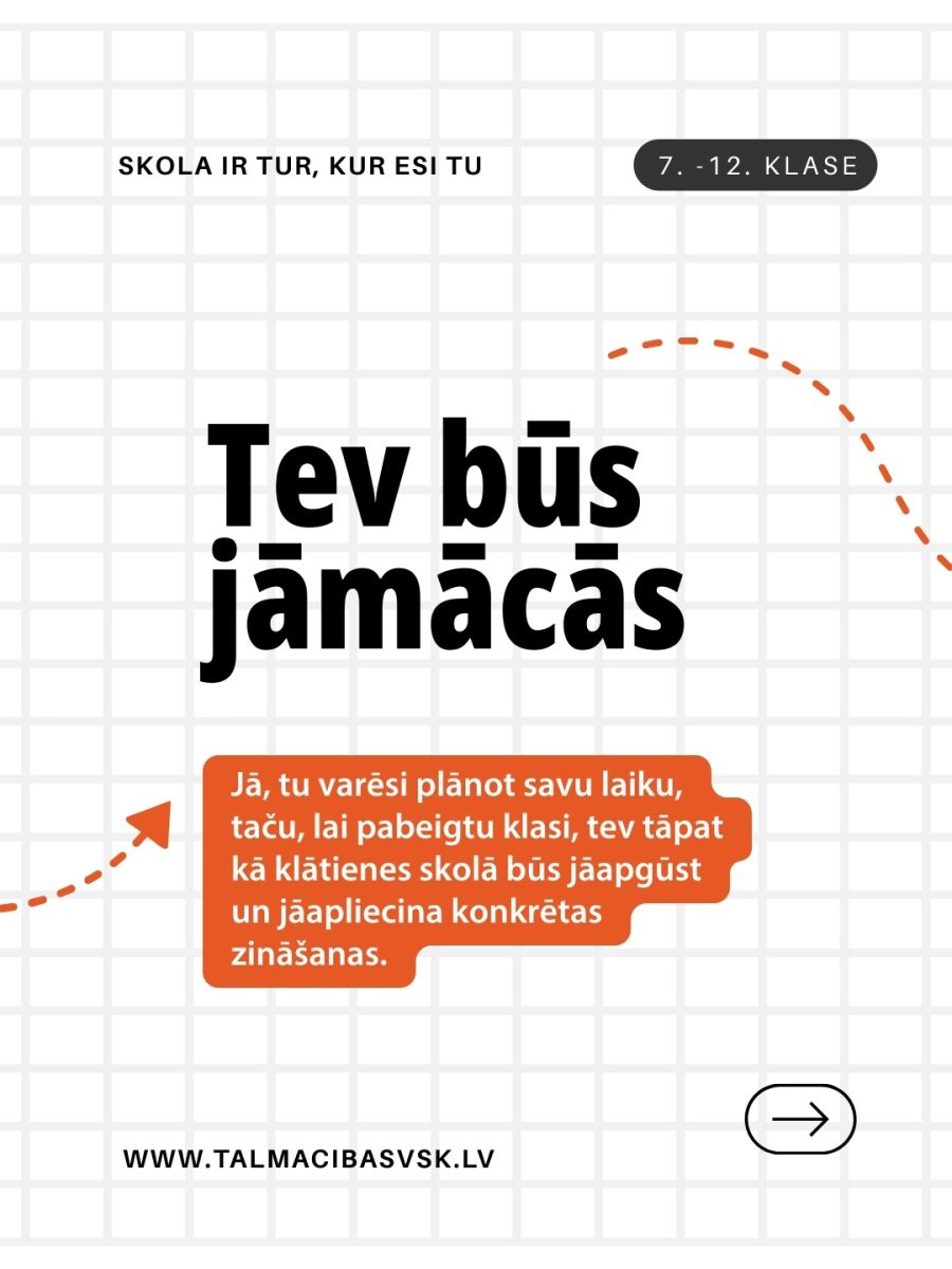 Tālmācība bieži tiek uztverta ar aizspriedumiem - ka tā ir vieglāka, mazāk kvalitatīva vai piemērota tikai tiem, kuri “negrib mācīties”. Patiesībā realitāte ir citāda. Tālmācība prasa pašdisciplīnu, atbildību un spēju plānot savu laiku. Mūsu digitālā mācību vide, pedagogu atbalsts, mācību materiāli, konsultācijas un regulāri pārbaudes darbi nodrošina pilnvērtīgu mācību procesu, kas ļauj skolēniem apgūt valsts izglītības programmu tikpat kvalitatīvi kā klātienē. Daudziem jauniešiem tā kļūst par iespēju sabalansēt mācības ar sportu, darbu, profesionālo attīstību vai veselības vajadzībām. Tāpēc tālmācība nav “vieglāks ceļš” - tā ir citāda, elastīga un mūsdienīga izglītības forma, kas dod iespēju mācīties elastīgāk. 📚💻