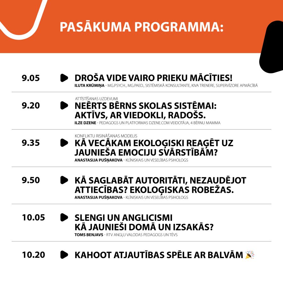 Šī konference ir paredzēta 7.–12. klašu skolēnu vecākiem, kuri vēlas: